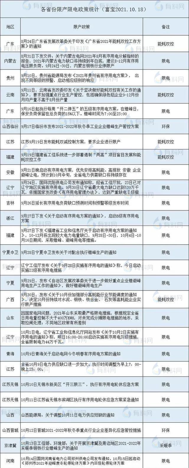 各省份限產(chǎn)限電的政策統(tǒng)計(jì)