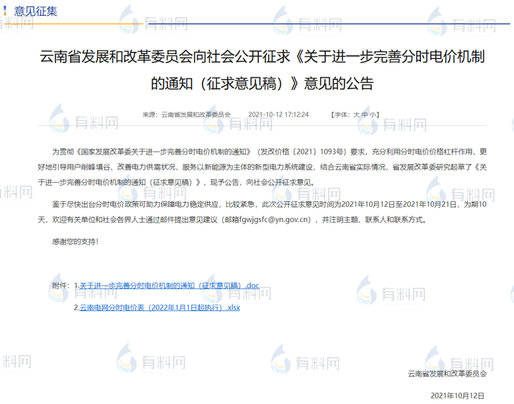 云南發(fā)改委發(fā)布公告《關(guān)于進(jìn)一步完善分時(shí)電價(jià)機(jī)制的通知(征求意見(jiàn)稿)》。電度電價(jià)峰谷價(jià)差維持現(xiàn)行1.5:1:0.5,其中非市場(chǎng)化電量在目錄豐枯電價(jià)基礎(chǔ)上,峰時(shí)段電價(jià)在平時(shí)段基礎(chǔ)上上浮50%,谷時(shí)段在平時(shí)段電價(jià)下浮50%;市場(chǎng)交易電量以當(dāng)月電能量交易價(jià)格為基準(zhǔn),峰時(shí)段電價(jià)上浮50%,谷時(shí)段電價(jià)下浮50%。