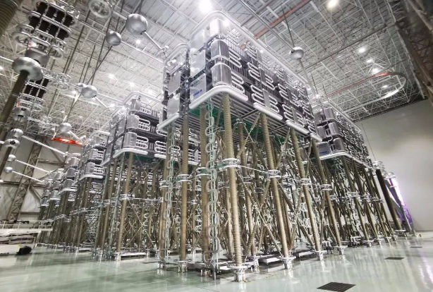 柳北換流站作為昆柳龍直流工程的一環(huán),承接了從昆北到龍門的送電任務(wù)。特變電工承擔(dān)柳北極1換流站設(shè)備研制與生產(chǎn)任務(wù),設(shè)備總?cè)萘繛?GW,涉及2個閥廳24個閥塔。作為柔性直流輸電技術(shù)的心臟——換流閥,是直流電和交流電相互轉(zhuǎn)換的橋梁,通過換流閥可以實現(xiàn)交流電和直流電的電壓(即:交直流電不同電壓等級之間互聯(lián)互相轉(zhuǎn)換)變換,可以實現(xiàn)送電功率(即:電容量大小)的變送,這在柔性直流主設(shè)備中技術(shù)含量最高、挑戰(zhàn)最大。