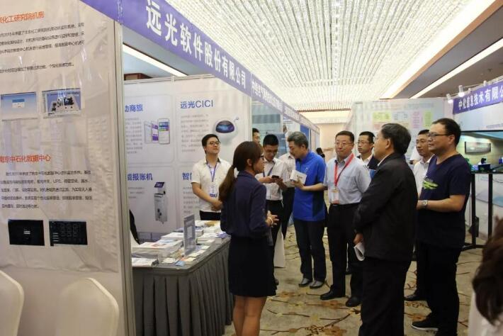 圖注:中國石油天然氣股份有限公司規(guī)劃總院副院長葛雁冰、中國石油集團工程技術研究院有限公司副總經(jīng)理趙彤等領導參觀遠光軟件展臺