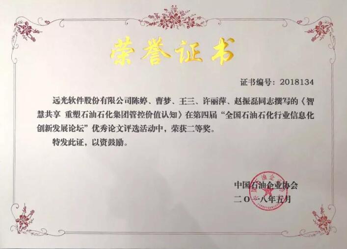 本次大會還面向全國各石油石化企業(yè)及相關信息與技術合作服務單位,廣泛征集會議論文。由遠光軟件陳婷等撰寫的《智慧共享 重塑石油石化集團管控價值認知》榮獲本次論文評選二等獎。