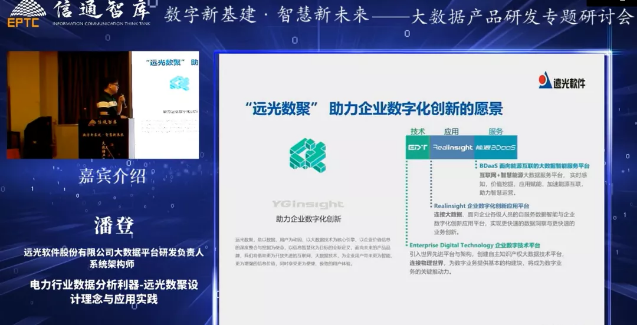 經(jīng)過多年積累,遠光軟件推出了“遠光數(shù)聚”智能大數(shù)據(jù)一站式服務平臺,并以技術(shù)、數(shù)據(jù)、應用服務化為產(chǎn)品動因,研發(fā)系列產(chǎn)品,如企業(yè)數(shù)字化創(chuàng)新應用平臺Realinsight、能源大數(shù)據(jù)服務平臺BDaaS等,致力于幫助企業(yè)實現(xiàn)數(shù)字化管理和創(chuàng)新。潘登向嘉賓們詳細介紹了“遠光數(shù)聚”的設計理念,以及為電力行業(yè)提供高效、精準數(shù)據(jù)分析的應用實踐。