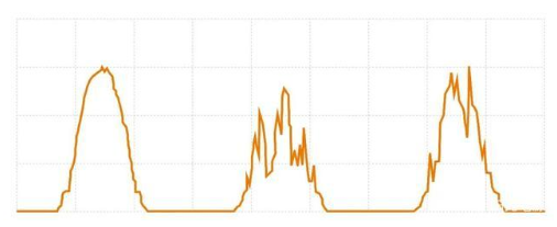 圖3為日本某光伏電站三天的實(shí)際發(fā)電曲線。該電站采用7倍容配比設(shè)計(jì),通過(guò)直流側(cè)加裝儲(chǔ)能系統(tǒng),實(shí)現(xiàn)光儲(chǔ)電站24小時(shí)發(fā)電,徹底解決了棄光和輸出功率波動(dòng)的問(wèn)題。