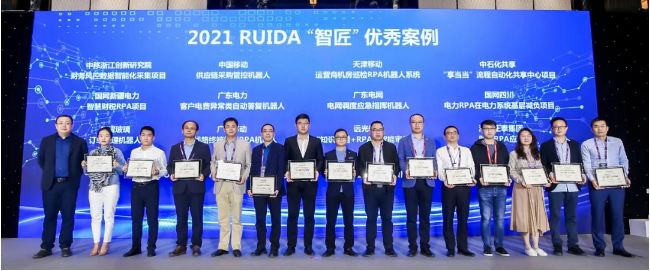 本次峰會由中國信息通信研究院(以下簡稱“中國信通院”)、中關(guān)村數(shù)智人工智能產(chǎn)業(yè)聯(lián)盟主辦,RPA產(chǎn)業(yè)推進方陣(RUIDA)承辦。峰會面向銀行、證券、保險、能源、制造、互聯(lián)網(wǎng)、教育、零售、醫(yī)藥等多個行業(yè)公開征集RPA應用案例,并對評選出的優(yōu)秀案例進行表彰。通過行業(yè)專家評審、公開票選等層層評選,遠光軟件申報的“知識圖譜+RPA”智能審單項目案例脫穎而出,榮獲“2021‘智匠’RPA優(yōu)秀案例”獎。