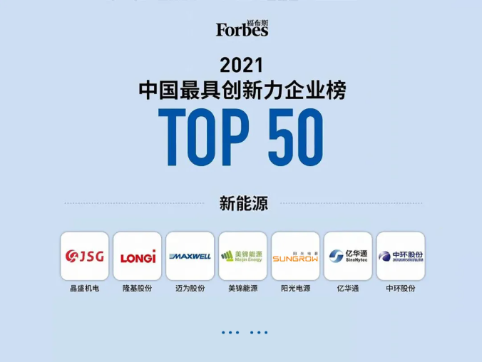 福布斯中國日前發(fā)布2021年中國最具創(chuàng)新力企業(yè)榜單,共計提名了50家最具創(chuàng)新力并持續(xù)成長的中國企業(yè)。陽光電源憑借在新能源領(lǐng)域多年的持續(xù)穩(wěn)健運(yùn)營、領(lǐng)先的科創(chuàng)實力登陸榜單。