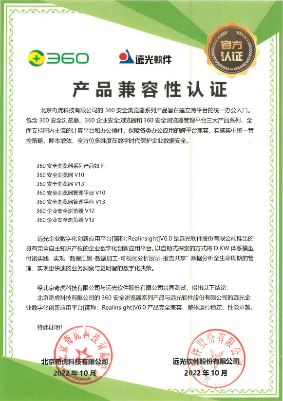 本次進(jìn)行兼容互認(rèn)證的廠商,是國內(nèi)主流的企業(yè)信息服務(wù)供應(yīng)商。通過完成與上述國產(chǎn)化產(chǎn)品的適配,有利于更好支持國產(chǎn)化軟硬件環(huán)境,為企業(yè)提供更加全面的國產(chǎn)化解決方案。接下來,遠(yuǎn)光軟件將繼續(xù)堅(jiān)持自主創(chuàng)新,推動(dòng)更多產(chǎn)品加強(qiáng)國產(chǎn)化適配認(rèn)證,攜手更多合作伙伴構(gòu)建自主可控的國產(chǎn)IT生態(tài),更好筑牢網(wǎng)絡(luò)安全屏障、護(hù)航數(shù)字經(jīng)濟(jì)發(fā)展。