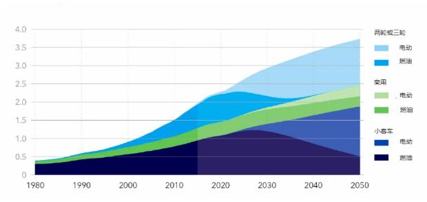 圖:全球不同類型和動力系統(tǒng)的路面交通工具數(shù)量統(tǒng)計(單位:百萬輛)