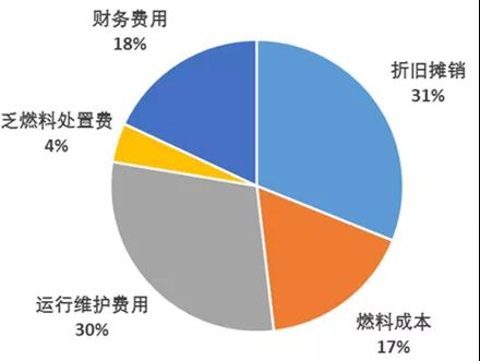 核電發(fā)電成本由折舊攤銷、燃料成本、運(yùn)行維護(hù)費(fèi)用、財(cái)務(wù)費(fèi)用、乏燃料處置費(fèi)用等組成(見圖2)。在電改背景下,核電上網(wǎng)面臨“量?jī)r(jià)齊跌”壓力,經(jīng)濟(jì)性提升壓力日益增大,并進(jìn)一步向上游傳導(dǎo)至核燃料加工產(chǎn)業(yè)。