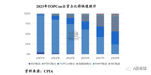 由于TOPCon電池經(jīng)濟(jì)性更強(qiáng),一體化組件龍頭企業(yè)及專業(yè)化電池企業(yè)紛紛快速擴(kuò)產(chǎn),并有望于2023年實(shí)現(xiàn)出貨量快速增長(zhǎng)。據(jù)CPIA預(yù)測(cè),2023年TOPCon出貨占比將實(shí)現(xiàn)翻倍增長(zhǎng)。預(yù)計(jì)2023年全行業(yè)TOPCon電池組件出貨將達(dá)到100-150GW。