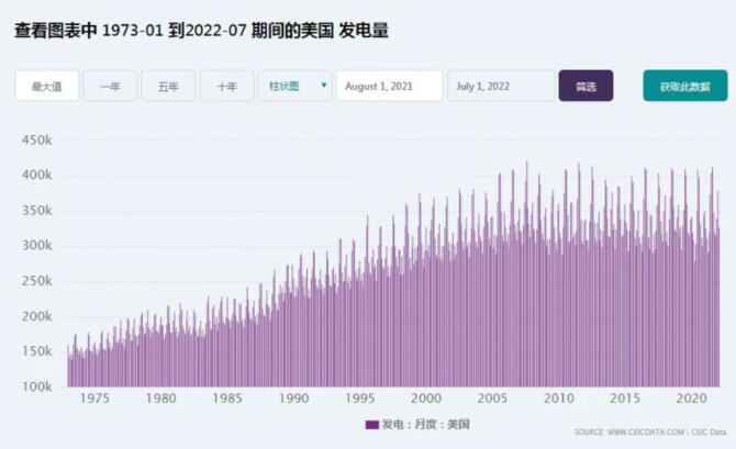 第二階段:1972年至2002年,這30年間,美國發(fā)電量增長1.09倍,年均增長率為0.2%。
