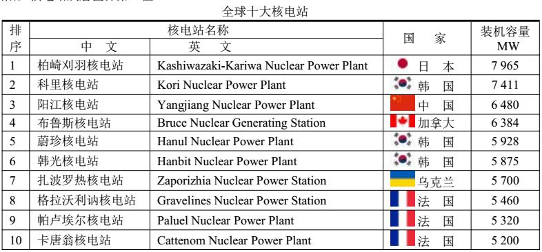 △ 世界上最大的核電站是日本柏崎刈羽核電站,裝機容量為7965MW,但2011年已經(jīng)停工。值得注意的是韓國核電站進展很快,前十位核電站就占有3席,把美國和日本都摔到后面。另外值得注意的是中國陽江核電站躍居世界第三位。