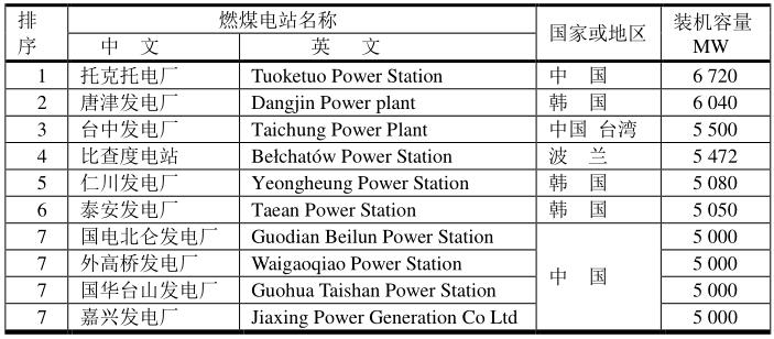 燃煤發(fā)電仍然霸占全球電力生產(chǎn)的主導(dǎo)地位,主要生產(chǎn)國(guó)是中國(guó),居第一位是中國(guó)托克托電廠。中國(guó)臺(tái)灣地區(qū)的臺(tái)中發(fā)電廠降低到第三位。。