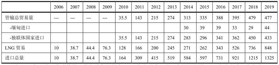 中國管輸進口量(單位:億立方米)