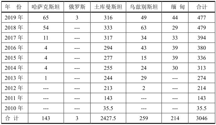 世界上天然氣儲量最多的國家是俄羅斯,土庫曼斯坦居世界第四位。中國管輸天然氣進口依靠資源豐富的俄羅斯和中亞國家,最早的最重要的出口國是土庫曼斯坦,于2010年開始出口,到2019年總量已經(jīng)達到2427.5億立方米;其次是烏茲別斯坦、緬甸和哈薩克斯坦。俄羅斯從2019年也開始出口到中國,而且將會逐年增加,成為管輸出口到中國最多的國家。