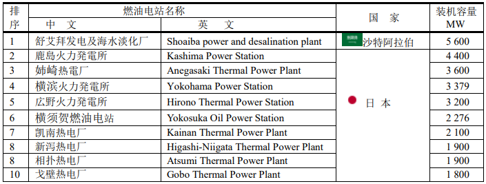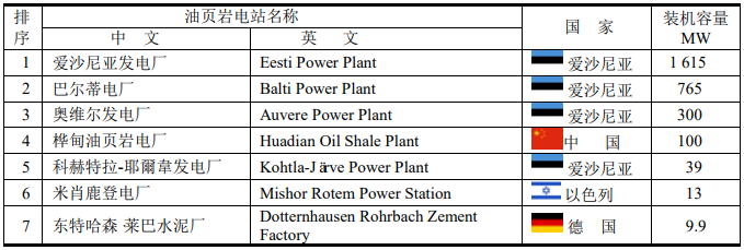 表中油頁(yè)巖電站所使用的燃料不是頁(yè)巖油,而是油頁(yè)巖。