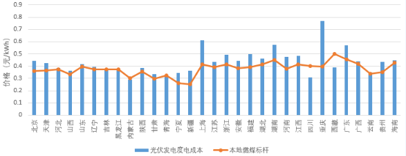 圖2 光伏發(fā)電度電成本與燃煤標(biāo)桿電價(jià)對比