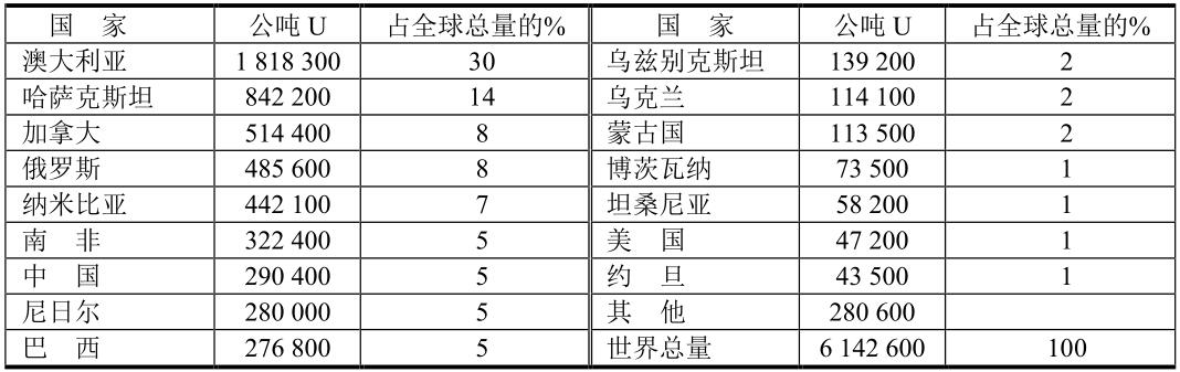 各國的鈾儲量