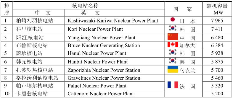 世界上最大的核電站是日本柏崎刈羽核電站,裝機容量為7965MW,但2011年已經(jīng)停工。值得注意的是韓國核電站進展很快,前十位核電站就占有3席,把美國和日本都甩到后面。