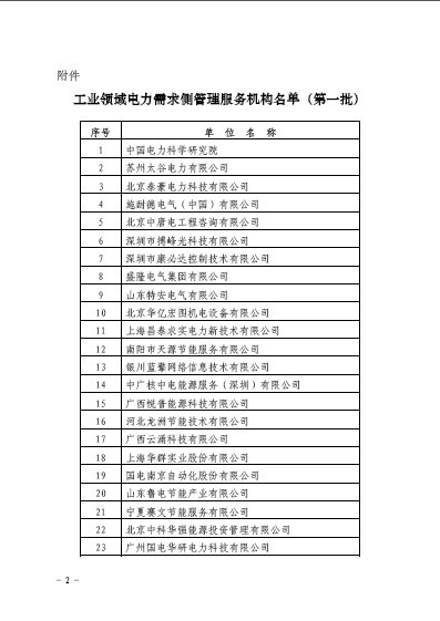 關于公布全國工業(yè)領域電力需求側(cè)管理服務機構名單(第一批)的通知