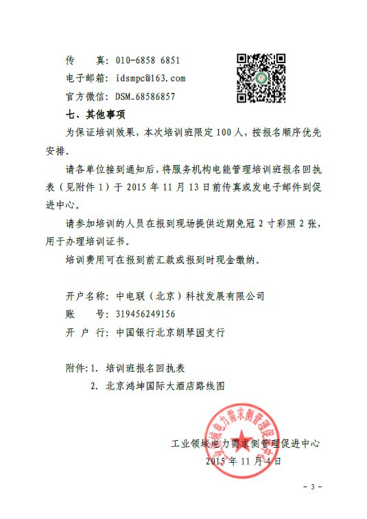 附件:1、關(guān)于舉辦工業(yè)領(lǐng)域電力需求側(cè)管理電能管理培訓(xùn)班通知(工電促[2015]11號)2、培訓(xùn)班報(bào)名回執(zhí)表